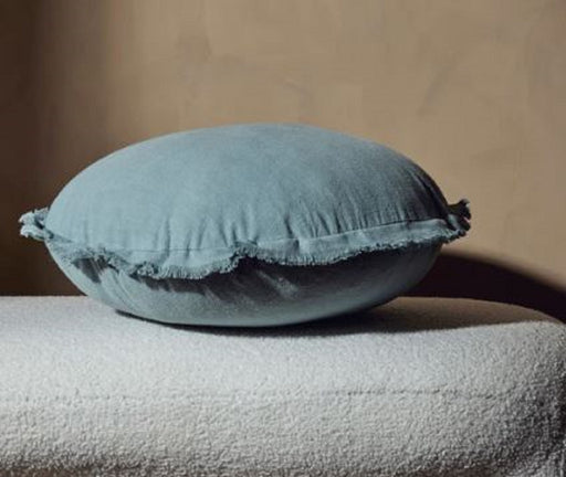 Rustic linen cushion cover in a washed denim blue colour with frayed edges. Colour: Blue Composition: 100% Linen Care Instructions: ...