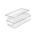 The OXO Good Grips Fridge Organization System is an extensive collection of bins, drawers, shelves, risers and accessories to help streamline your refrigerator. Never run out of eggs again with our Egg Bin with Removable Tray. The sturdy accessory holds up to 20 fragile eggs with room for stacking. The clear bin and lid keep them safe, while you keep an eye on when you need to restock. The removable egg tray allows for easy, thorough cleaning of any cracks and spills, while the lid adds an extra layer of protection. The Egg Bin has rounded handles for a comfortable grip and smoothly slides in and out of the fridge when you need it. It measures 5.75 in x 14.8 in x 3 in/14.6 cm x 37.6 cm x 7.62 cm and handwash only.