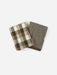 Set of 2 woven cotton tea towels. One in giant check, the other small check. Including gift packaging made from recycled cardboard.