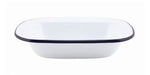 Pie Dish Oblong, Enamelware, White, 26cm Oblong pie dishes feature a wide rim and ample depth making them ideal for pies and puddings. 26cm x 19.5cm x 6cm